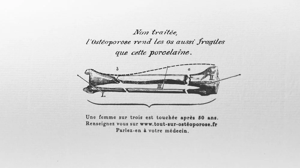 “Untreated, Osteoporosis makes bones as fragile as this porcelain”.