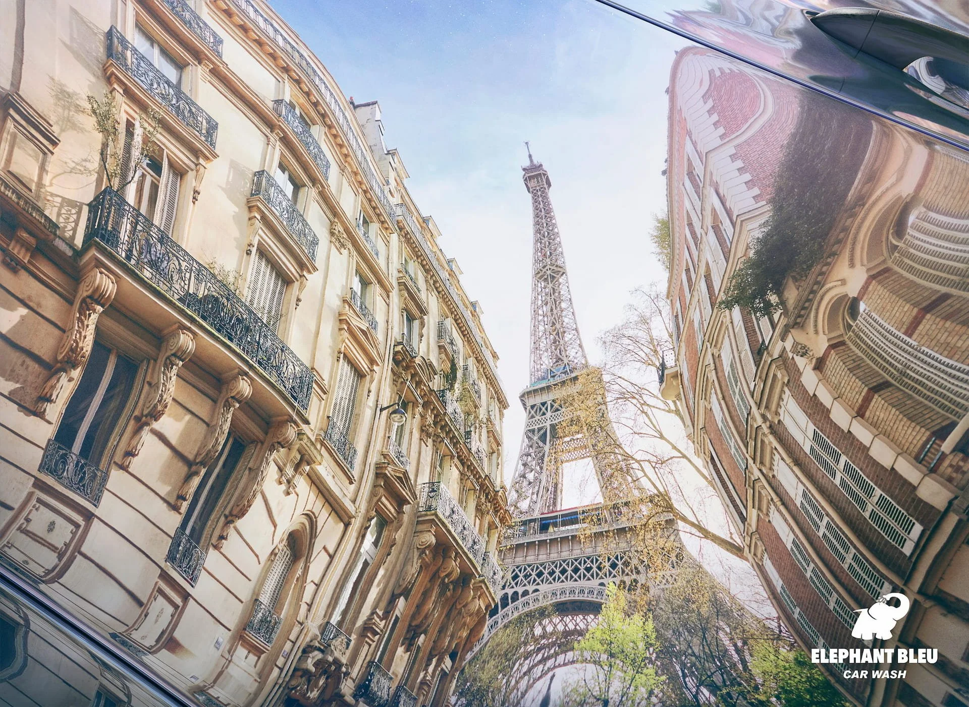 Elephant Bleu is the leading car wash company in Europe. The insight we found : a perfectly clean car makes every reflection beautiful. We made 4 visuals of these reflections. The viewer goes through two stages of reading : first he sees a beautiful landscape, like an impressionist painting, and then a figurative car detail reveals a second reading : it's actually the image of a reflection on a magnificently clean car.
