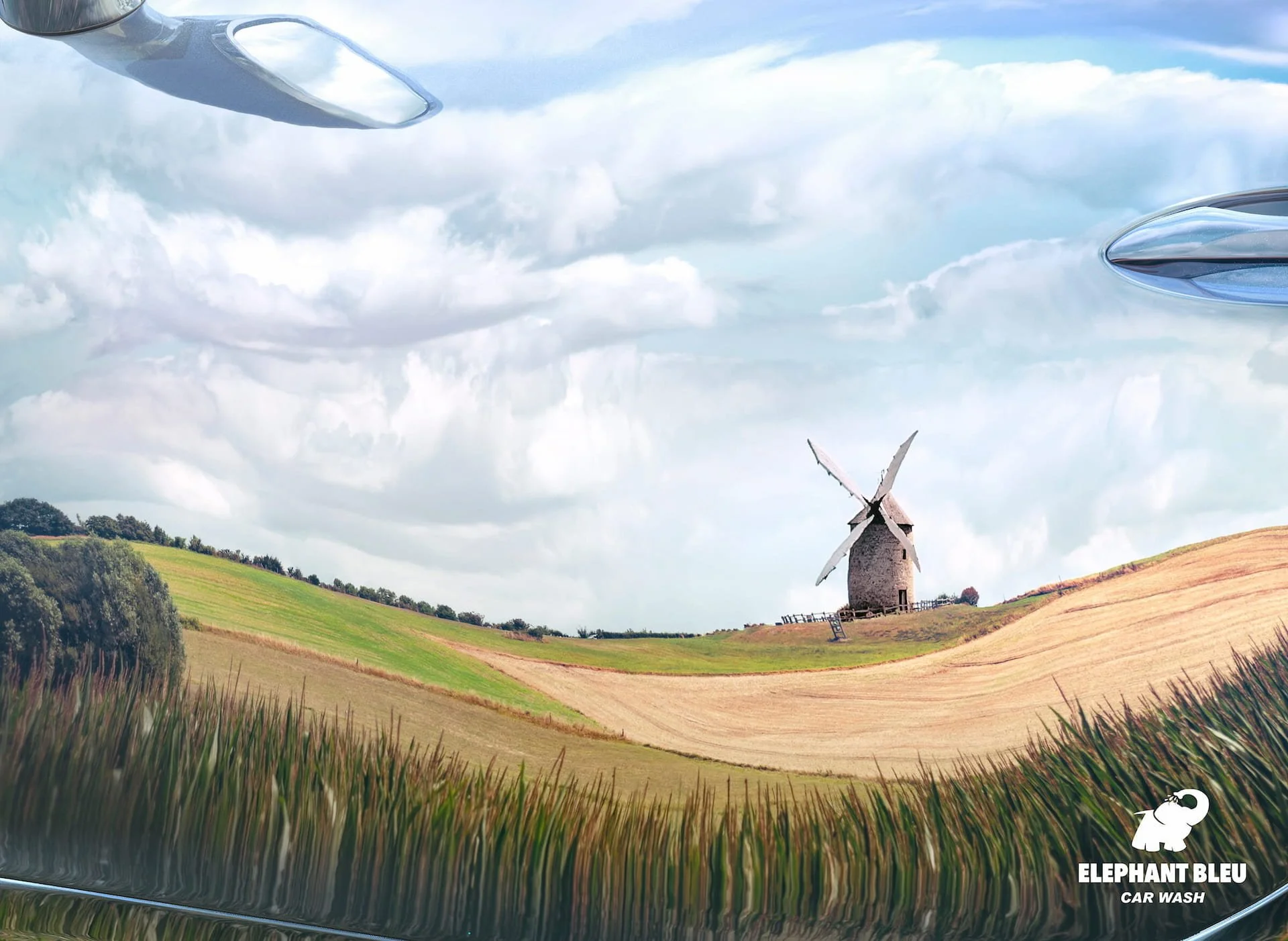We created four visuals based on these reflections. At first glance, you see a stunning landscape, almost like an impressionist painting. Then a car detail appears and you realise it is actually the reflection on a perfectly clean bodywork.